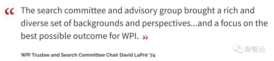 「我们选择校长时,充分考虑了候选人的专业背景和个人特点,以及她对WPI是否欣赏,对WPI的未来有哪些创造性思考。这些让她在众多优秀的候选人中脱颖而出。」