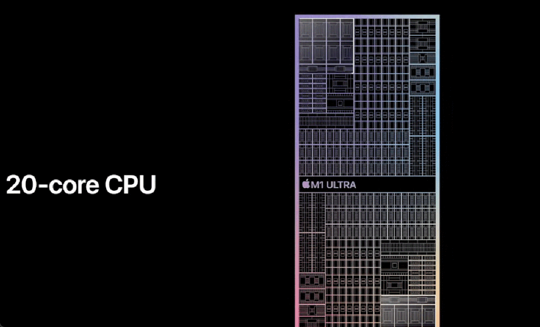 该芯片内含 20 核 CPU,其中 16 性能核和 4 能效核;64 核 GPU,速度是 M1 的 8 倍.