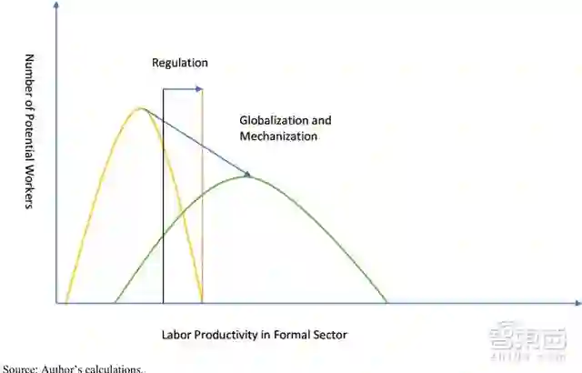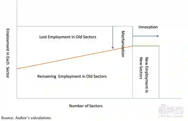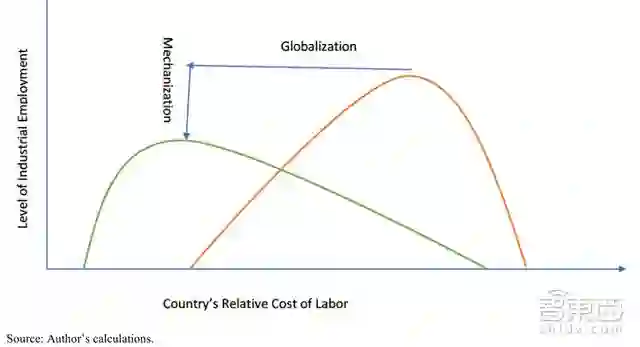 ▲机械化和全球化对整体就业的影响