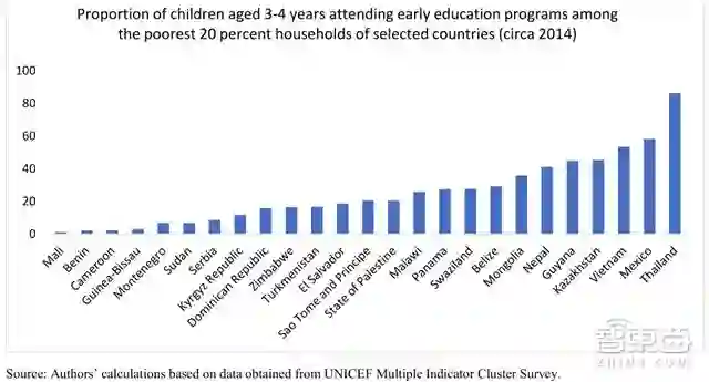 ▲在许多国家,来自弱势背景的儿童最不可能参加儿童早期教育计划