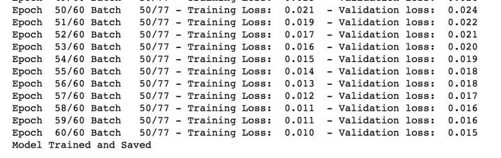 至此,我们完成了整个模型的构建与数据的处理。接下来我们对模型进行训练,我定义了batch_size=128,epochs=60。训练loss如下: