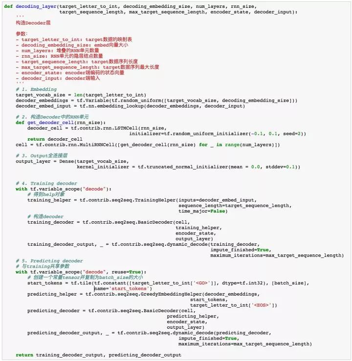 注意,我们这里将decoder分为了training和predicting,这两个encoder实际上是共享参数的,也就是通过training decoder学得的参数,predicting会拿来进行预测。那么为什么我们要分两个呢,这里主要考虑模型的robust。