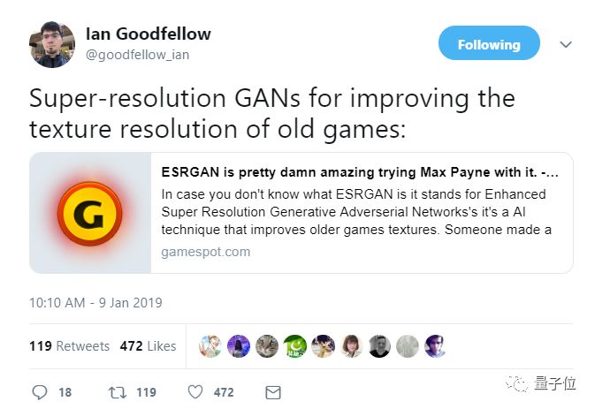 这个应用场景同样也引起了AI圈大佬的注意。GAN之父Ian Goodfellow在Twitter上转发了相关的信息,引发了不少的关注。