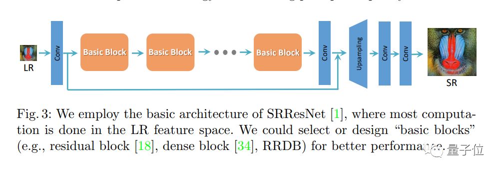 在模型架构上的,基本和SRGAN差不多,区别在于针对基本块(BasicBlock)的替换。
