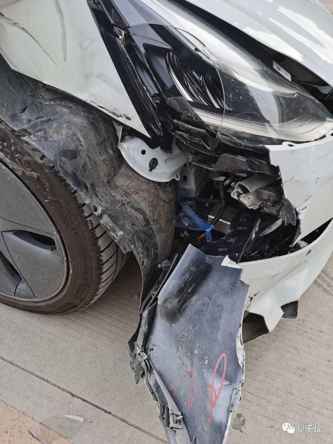 「等我反应过来,就已经来不及了,」他说。现在的他感到后怕和庆幸:只是车头受损严重,人并无大碍。