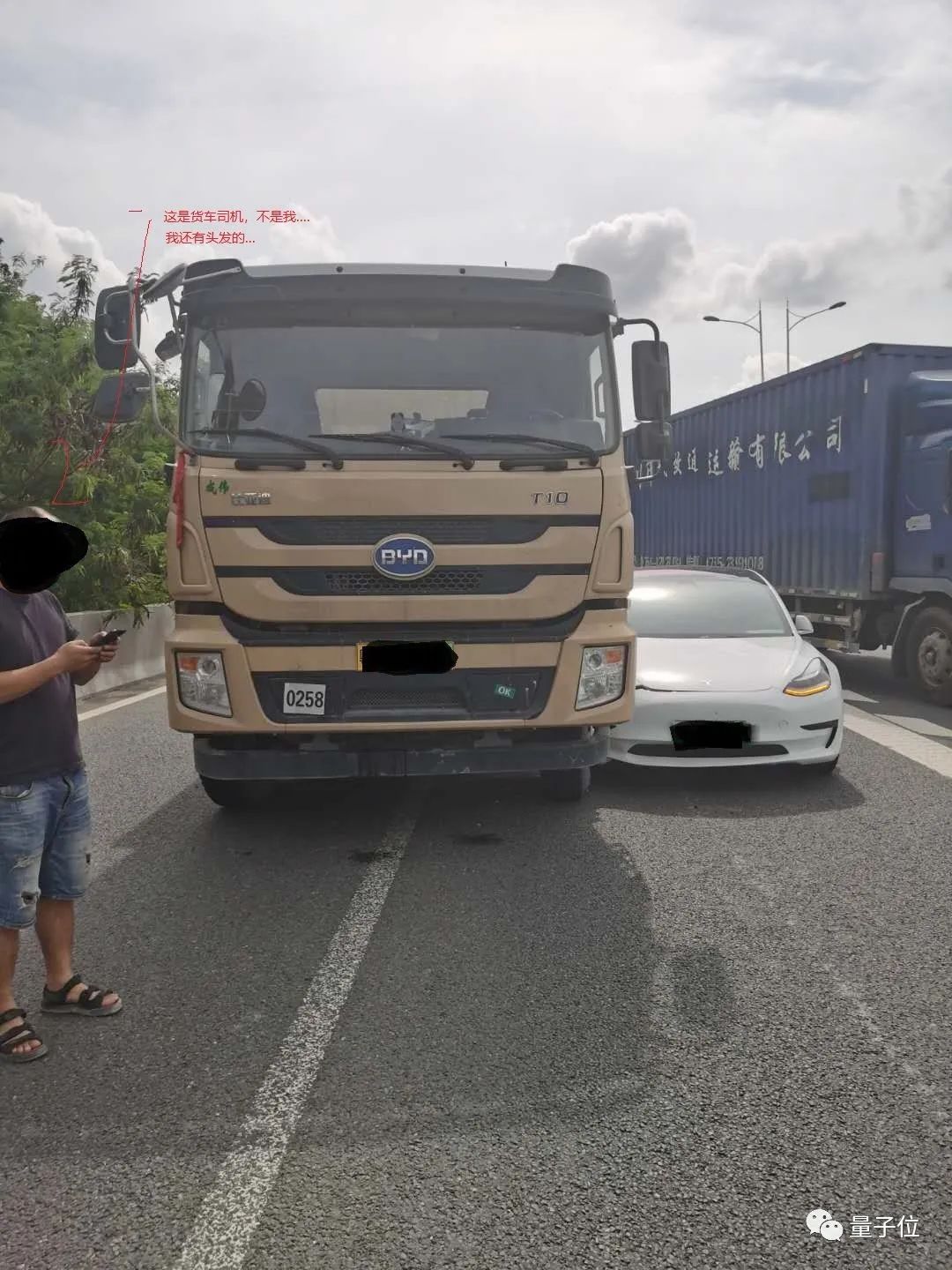 突然之间,右前方行驶的渣土车忽然并道而来,而他的Model 3却在自动驾驶系统的控制下,不仅没有停下来,反倒是一个加速撞了上去。
