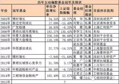 最后的11个交易日决定2015年偏股基金冠军归属,精彩还在继续,基金君和您一起期待。而回顾11年历年冠军归属可以看出,大多数冠军基金经理都已投奔私募,开创属于自己的事业,虽然他们在私募的发展并不都顺风顺水。对于仍留在公募的优秀基金经理,我们应该更知珍惜,毕竟,优秀的投资能力永远是稀缺资源。