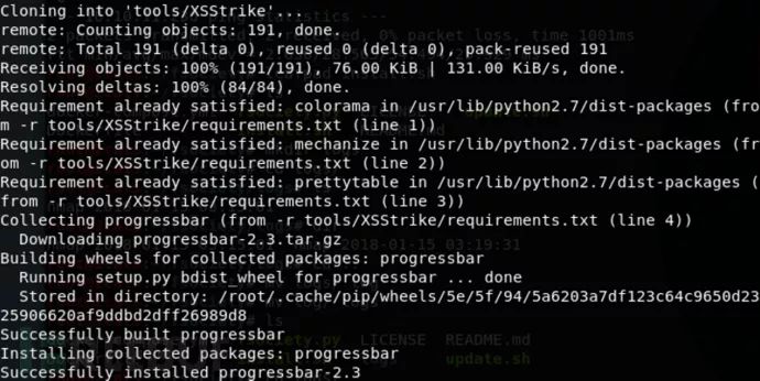 下面我再测试一个模块,XSStrike相信有很多人应该也会用到,就是各种xss扫描。初次使用会直接下载安装此模块。