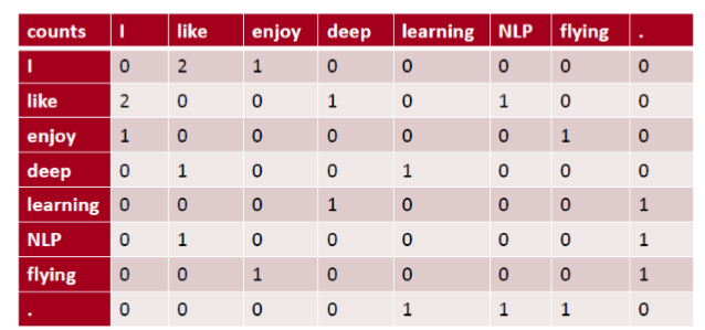 利⽤某个定⻓窗⼝中单词与单词同时出现的次数来产⽣window-based (word-word) co-occurrence matrix