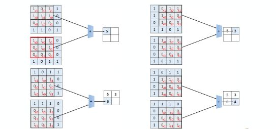 就是两个矩阵的对应位置相乘再求和。大矩阵就是神经网络要处理的数据,比如一幅树的图片,小矩阵被称为卷积核,神经网络对图片的处理过程就是用卷积核在大矩阵上一步步的移动并相乘、求和,这么做的目的是什么呢?卷积核实际上是个筛子,上述过程实际上就是对大矩阵进行扫描和特征筛选的过程。