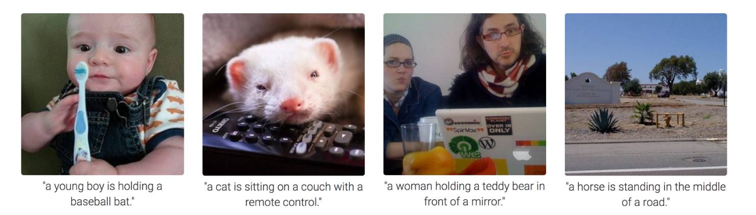 现有的计算机视觉系统对于世界的(最佳)描述并不稳健。这里是一个模型的几个实例,它可以生成关于图像的自然语言描述(来源:http://cs.stanford.edu/people/karpathy/deepimagesent/)。
