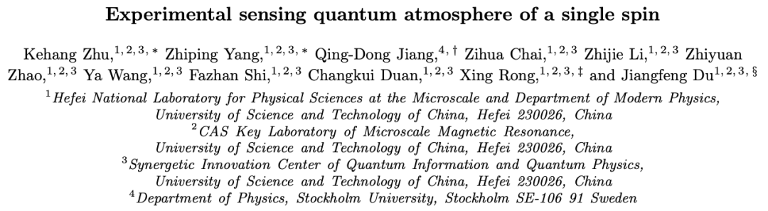 在校期间,朱科航发表了题为「Experimental sensing quantum atmosphere of a single spin」的论文。