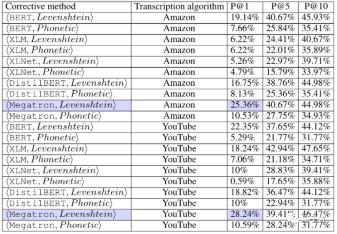 最终,Megatron和Levenshtein等模型展现出了最好的修复效果,分别给亚马逊AI带来了超过25%的正确修复率,给谷歌AI带来了超过28%的修复率。