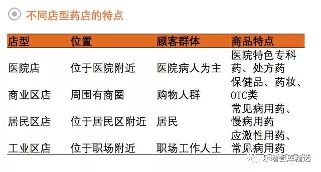 药店的所处位置决定了客流群体,对销售起到关键性作用。根据位置的不同,药店可分为医院店、商业区店、居民区店和工业区店。