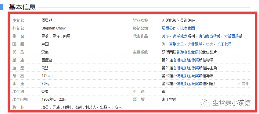 上一篇文章介绍了我们所使用的数据。其实,知识图谱数据的来源主要有三个:结构化数据、半结构化数据和非结构化的数据。我们所使用的电影数据就是结构化的数据。半结构化的数据指的是数据有一定的组织形式,但较结构化数据而言更松散(属性名和属性值具有多样性,比如“生日”就有“出生日期”、“诞辰”等多种表达方式),例如百度百科、维基百科、互动百科等;对infobox(下图红框)中的属性和属性值做一定处理后,我们就可以得到结构化的数据。非结构化数据通常是指我们看到的一切纯文本数据。
