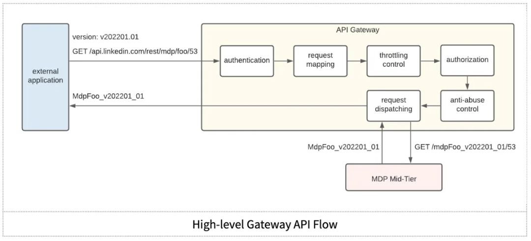 每当外部应用程序请求特定的 API 版本时,API 网关将对请求进行转换,并将其转发到适当的中间层。