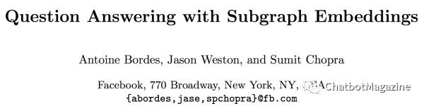 本期我们将介绍KB-QA传统方法之一的向量建模(Vector Modeling),我们以一个该方法的经典代表作为例,为大家进一步揭开知识库问答的面纱。该方法来自Facebook公司Bordes A, Chopra S, Weston J的论文 Question answering with subgraph embeddings(文章发表于2014年的EMNLP会议)。