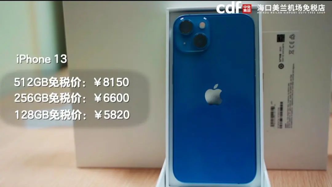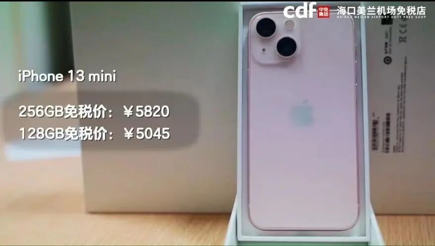 从“cdf 海口美兰机场免税店”官方微信公号发布的视频来看,iPhone 13 系列免税版价格比官方价格最多便宜近 400 元,最低价格 5045 元,目前部分型号已经断货,店员称后期会不会调价不清楚。