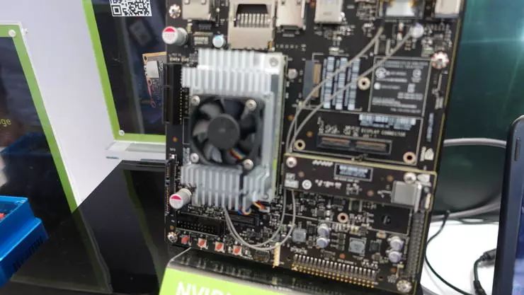 据英伟达现场工作人员介绍,他们此次展出的产品是Nvidia Jetson TX2。Jetson TX2核心板延续体积小、高性能特性,仅相当于信用卡大小,但性能两倍于TX1!GPU/CPU大升级,Jetson锡类进入全新的Pascal(16nm)架构时代,内存、存储容量翻倍:8G内存、32G固态存储。支持802.11AC WLAN 和蓝牙。