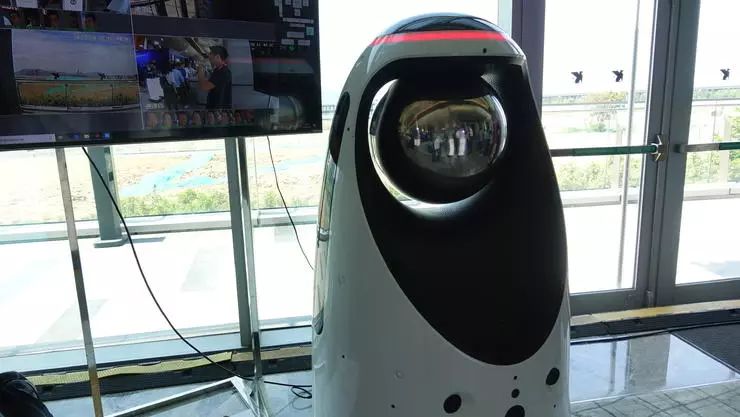 大道智创是以双目视觉技术为核心,以服务机器人自主导航为应用的新星公司。大道智创基于双目视觉定位导航的安防服务机器人已成功应用于高铁站、广场、园区等场景,获得了包括美亚柏科、海能达、航天华拓等上市公司的高度评价。其产品在十九大期间成为天安门广场智能巡逻机器人中唯一可用的视觉导航方案厂商。图为现场展示的安防机器人: