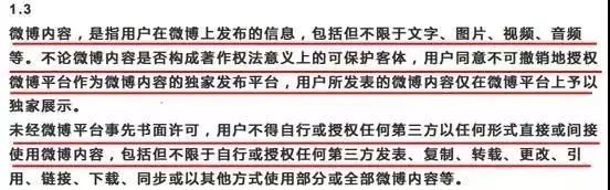 这些协议内容,被舆论理解为,虽然新浪微博不给用户钱,但你在我新浪微博上发的每一个文字以及其收益,都归新浪微博所有。这些条款,遭到诸多非议。
