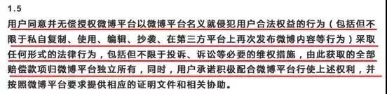 新修订的《微博服务使用协议》当中,有两个条款引发了舆论的广泛争议:用户发布在新浪微博上的内容,新浪享有独家版权;用户无偿授权微博去维权,维权的收益全部“归微博平台独立所有”;此外,用户还要承诺“积极配合微博平台行使上述权利,并按照微博平台要求,提供相应的证明文件和相关协助”。