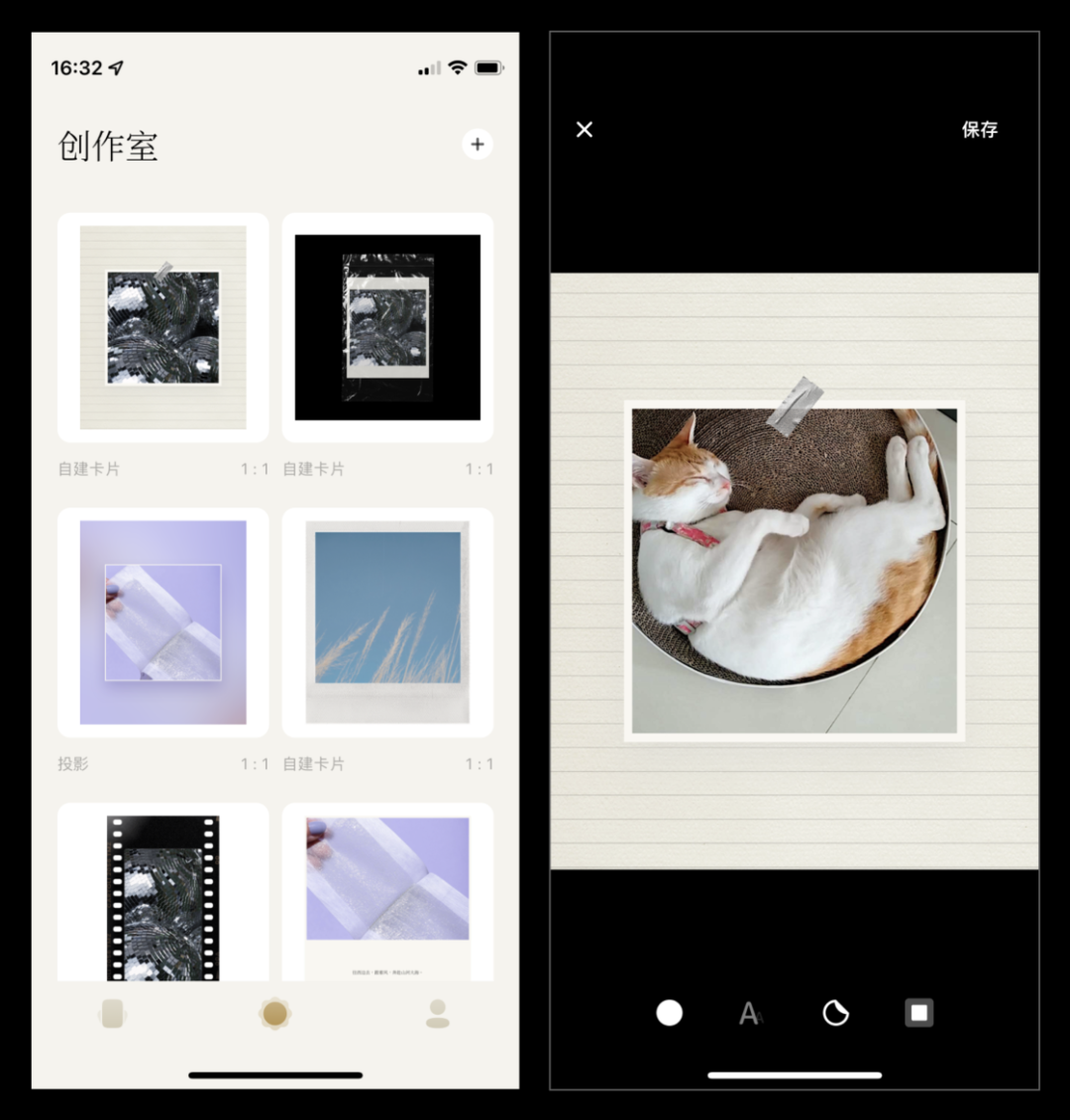 在经典和胶片分类里,你可以制作拍立得和胶片风格相框的卡片。当前版本里,卡片馆提供了 20 来款高质量相框,并会在后期迭代里持续更新。