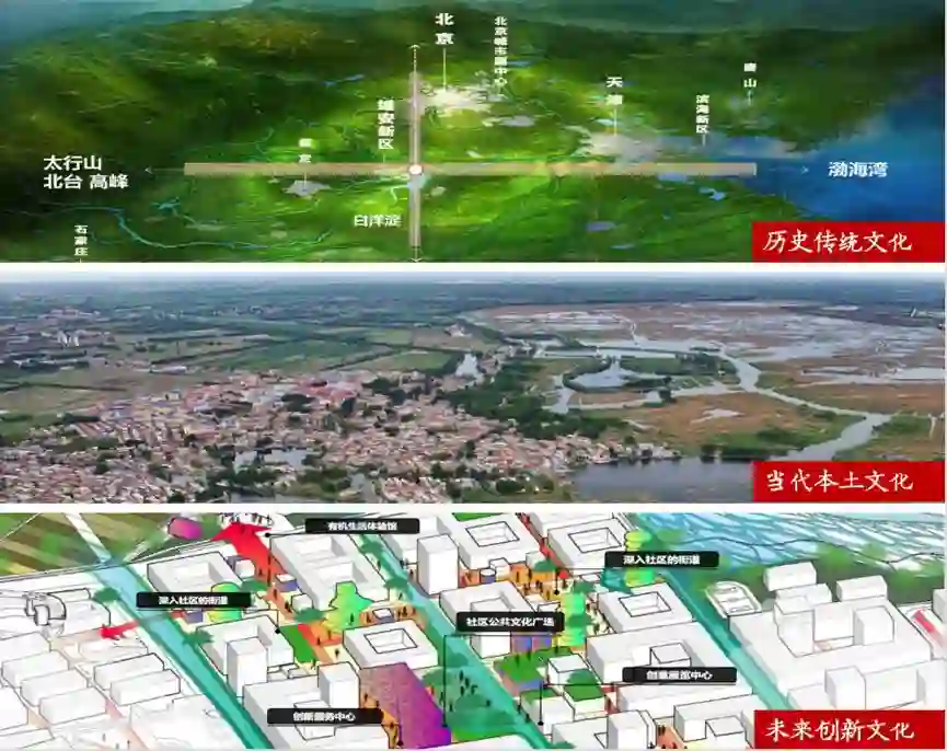城市风貌应该体现民族文化、地域特点、时代精神。基于此,雄安提出的风貌指引是中华风范、淀泊风光、创新风尚。