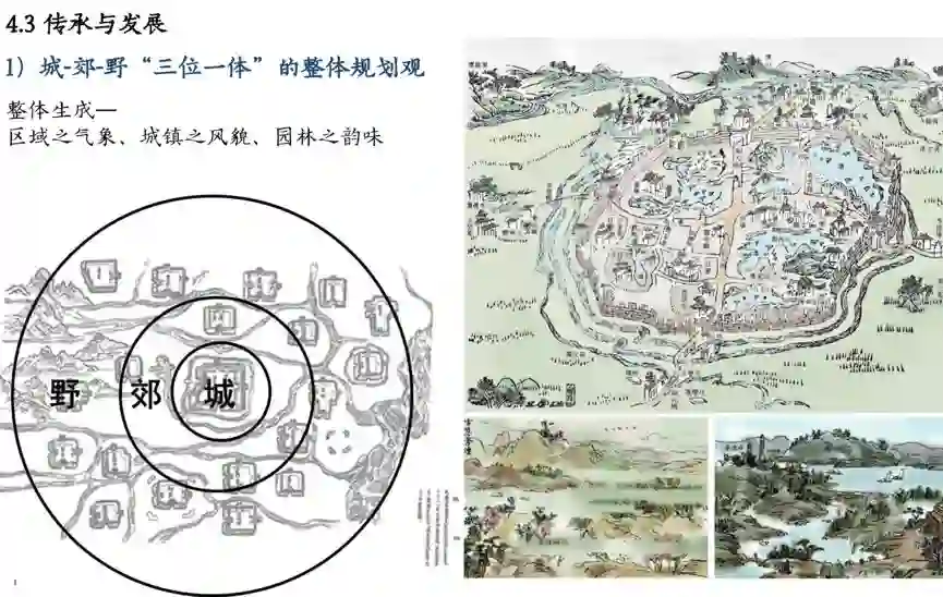 如何传承与发展呢?例如,城-郊-野“三位一体”的整体规划观,可以显现区域之气象、城镇之风貌、园林之韵味。