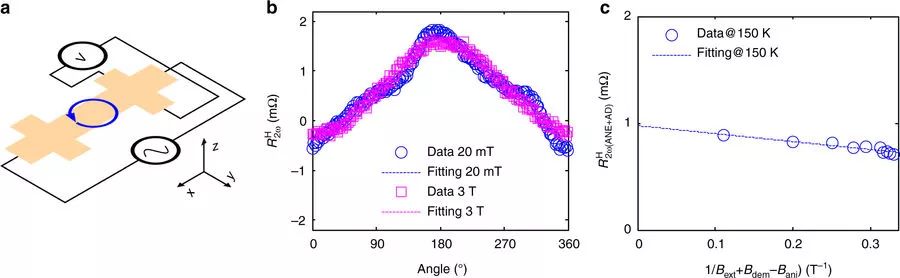 下图展示了霍尔电阻的测量装置以及霍尔电阻在不同条件下的变化。