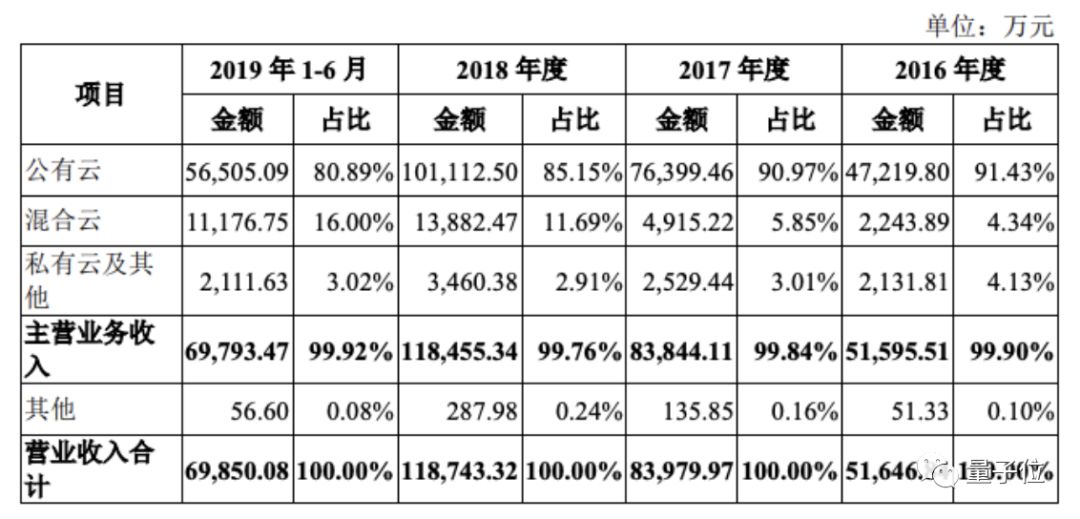 主要来自于公有云业务,收入5.65亿元,占比80.89%,与往年相比有所下降。其次是混合云业务,收入1.12亿元,占比提高到16%。