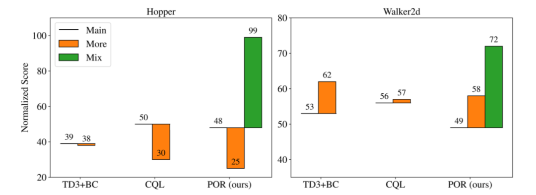 3. Mix: 对于解耦的算法,对于不同的学习部分,可以用不同的数据集进行学习,所以只有 POR 可以有 Mix 的学习范式。