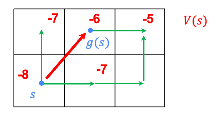 规则:智能体可以在任何一个格子选择它周围的八个格子,走到终点给与奖励 1,其他所有的行为奖励都是 0。