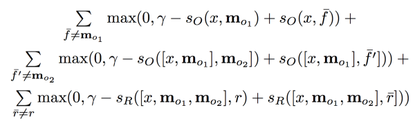 如何去训练记忆网络呢?给定训练数据 输入输出对我们可以通过梯度下降算法优化margin-based ranking损失函数,去训练记忆网络中的所有参数。假设输出模块每次输出两条支撑记忆,我们的损失函数如下: