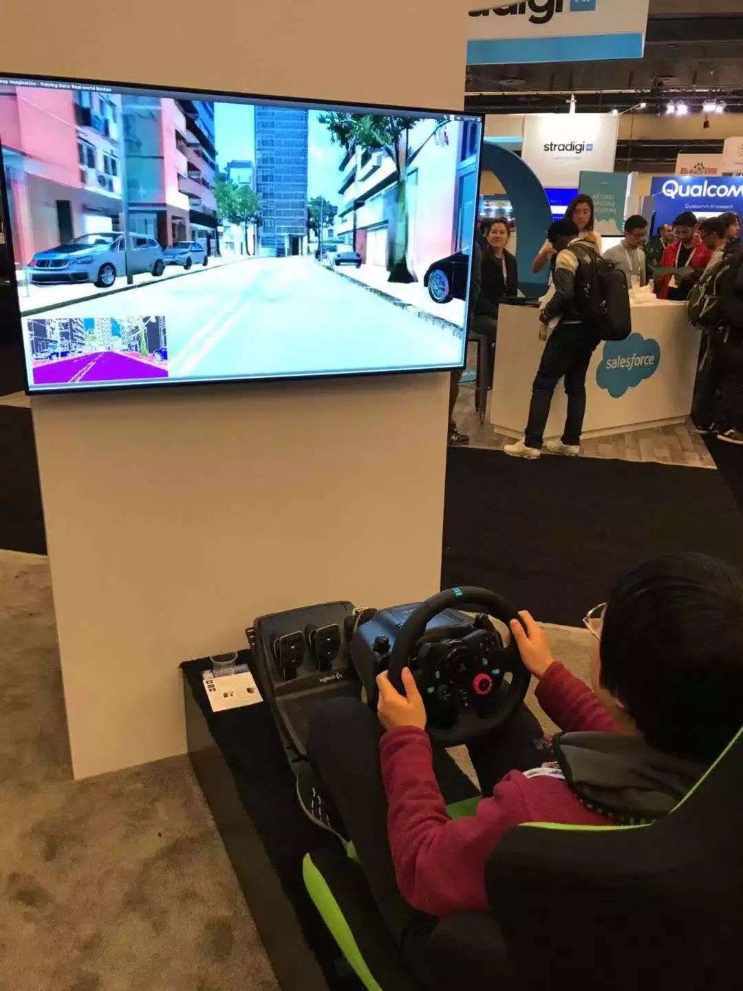 印象最深的是NVIDIA公司的一项视频生成工作:photorealistic video-to-video translation,根据语义分割的结果,算法能合成出不同城市风格的图片。连接上驾驶模拟器,还能体验一把在不同城市飙车的感觉。