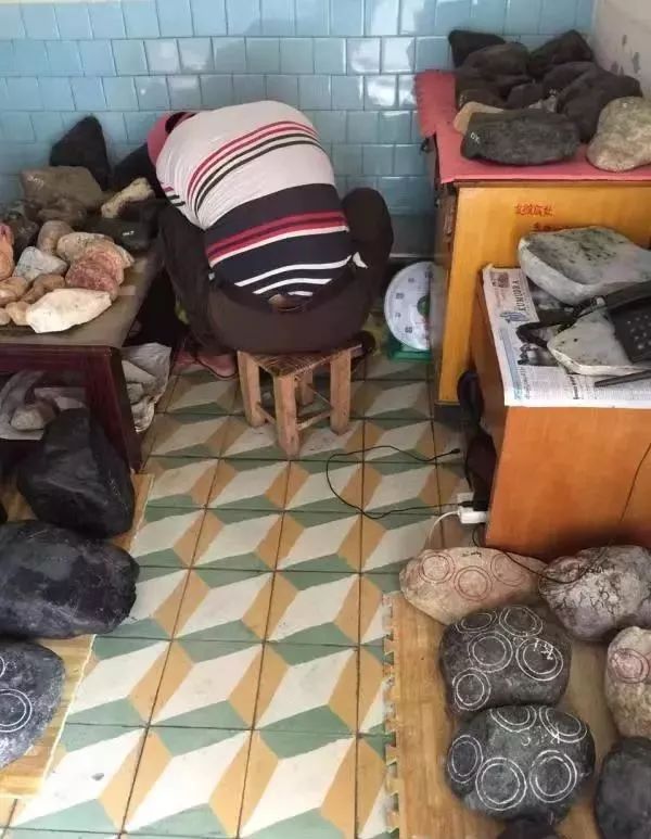 现在周哥看起来跟魔障一样,可以几个月不出门,躲在楼上弄石头,不让他玩他可能会疯掉。我们就给他送去一些不值钱的石料给他磨啊洗啊。以前受过他一些帮助和恩惠的老乡,会轮流接济一下他。比如这个月我给他一千块钱当伙食费,下个月就另外一朋友出,就这样让他先过着吧。