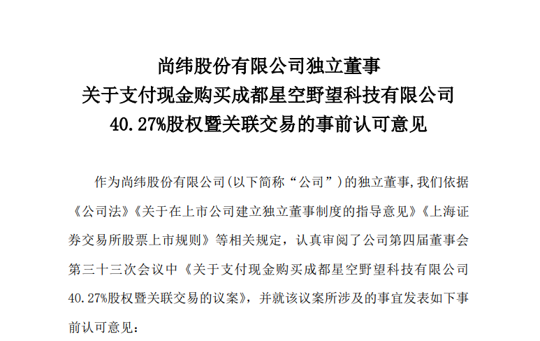 11 月 8 日, 电缆上市企业尚纬股份发布公告称,拟以自有及自筹资金不超过 5.89 亿元收购成都星空野望科技有限公司 40.27% 股权。