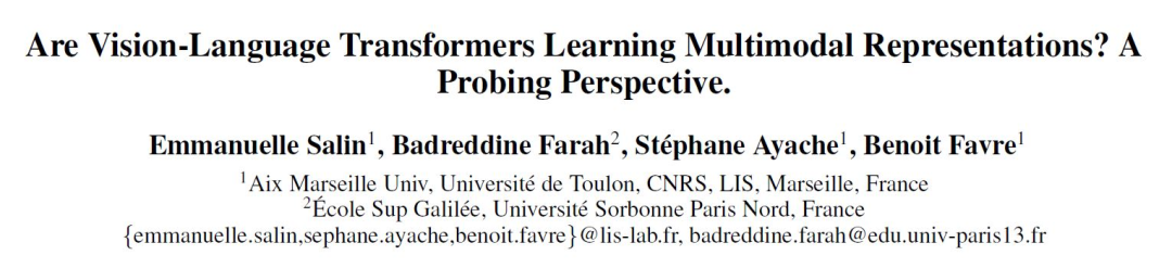 近年来,由于基于transformer的视觉语言预训练模型的发展,联合文本-图片的embedding得到明显的改善。作者通过一组文本、图像、多模态探究任务在单模态和多模态层次上比较预训练和微调的表征,并且引入了专门用于多模态探测的新数据集。结果证明了视觉语言预训练在多模态层次上理解了颜色的概念,对位置和大小的理解更依赖文本;在语义对抗的例子上,作者发现多模态预训练模型能够准确地指出细微的多模态差异。同时,作者发现模型在多模态任务(VQA、NLVR)上进行fine-tune不一定能提高其多模态表示能力。