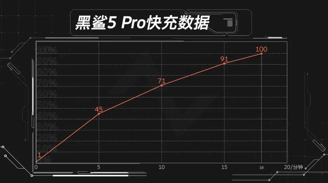 哦对了,就是黑鲨 5 Pro 依旧提供了 120W 快充,方案与小米旗舰机系列相同,充电头也都是通用的。4650mAh 电池,室温 26 度实测 24 分钟充满,符合预期。另外,黑鲨 5 Pro 在游戏和视频场景下还贴心提供直接给手机供电的旁路充电方案,有效延长电池的充放电寿命。