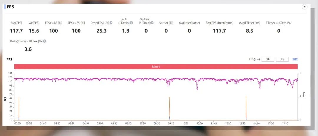 先来跑下国民游戏《王者荣耀》,开启超高刷新率,整个手机的稳定性让人很满意。平均帧率 117.7,整体机身温度温热可以接受,虽然比其他两款带有主动散热的手机热一丢丢。考虑到没有主动散热,可以理解。