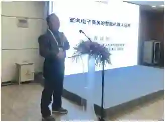 西安交通大学曹建福教授的报告题目是《面向电子商务的智能机器人技术》,报告主要围绕电子商务发展对机器人的需求、电子商务用机器人分类及特点、机器人化智能配送终端的开发、团队在机器人方面的成果等方向做了介绍。