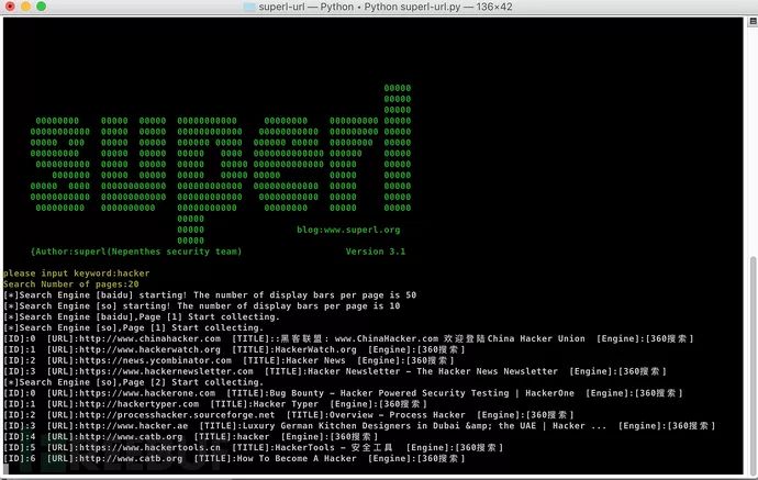 superl-url是一款开源的,并且功能强大的关键词URL采集工具,可以根据关键词,对搜索引擎内容检索结果的网址内容进行采集。