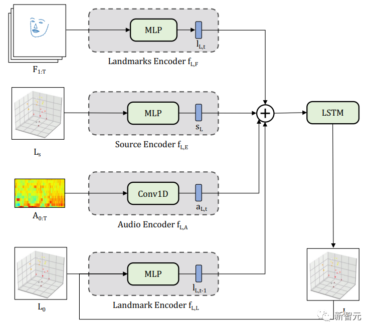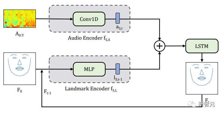 给定输入图像,提取归一化的3DDFA和MTCNN面部特征点(上图中的Speech2Landmarks)。