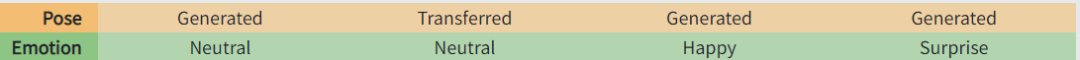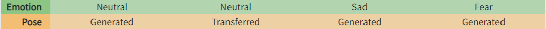 给定输入图像和上一步中预测的每帧潜在关键点,face-vid2vid生成器(一种基于图像的预训练面部动画模型)输出 512×512像素帧的动画视频。