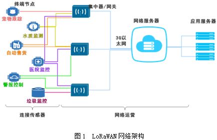 LoRaWAN网络架构如图1所示,由终端节点、网关、网络服务器及应用服务器组成。终端节点采用单跳与一个或多个网关通信。设计时,需根据应用场景满足低功耗、广域连接要求。网关是传输的中介,起到中继器的作用,将终端节点与网络服务器互通。节点与网关基于LoRa调制传输信息,而与服务器则通过广域通信方式连接。所有节点与网关之间双向通信,支持云端升级。网络服务器是将采集到的信息进行存储与处理,提供给应用服务器,供客户使用。