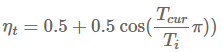 正如我们之前看到的,由于权重衰减不正常,热启动最开始对Adam算法并不适用。在固定权重衰减后,Loshchilov and Hutter (2017) 同样的把热启动扩展到Adam。他们设置参数为,得到下式: