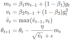 为了解决这个问题,作者提出了一种新的算法AMSGrad,它使用基于之前梯度平方的最大值而不是指数平均值来更新参数。没有偏差纠正估计的完整的AMSGrad更新如下所示:
