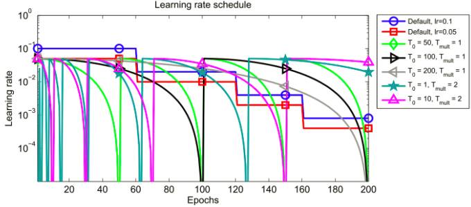 图1 使用了热重启的学习率迭代表(Loshchilov and Hutter, 2017)