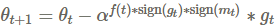 特别是他们定义了两个更新公式,PowerSign和AddSign,PowerSign的更新公式如下: