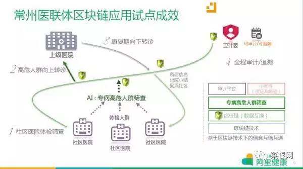 “我们看到了区块链技术大规模应用的优势,虽然现在刚接入两三家医疗机构,但后续随接入机构增多,就会形成一张快速部署的信息网络。引入阿里健康区块链的技术,实现我们业务数据真正的互联互通。而数据密文流转授权、以及全程可追溯可审计的特点,也增强了管理部门的信心。”张科说。该技术首先在常州武进医院和郑陆镇卫生院落地。之后,在常州市天宁区卫计局的牵头下,试点还会逐步推进到常州天宁区医联体内所有三级医院和基层医院。